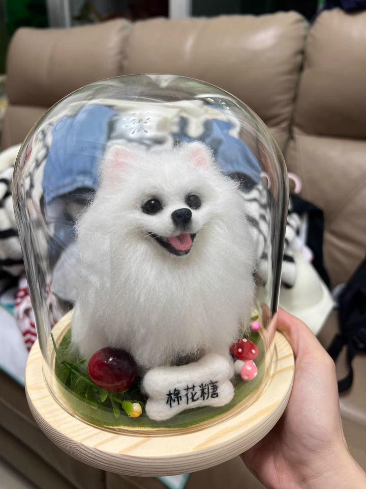 Custom Wool Felt Pet Memorial – Handmade Realistic Cat & Dog Keepsake with Glass Dome Frame, Personalized Loss of Pet Gift for Grieving Owners